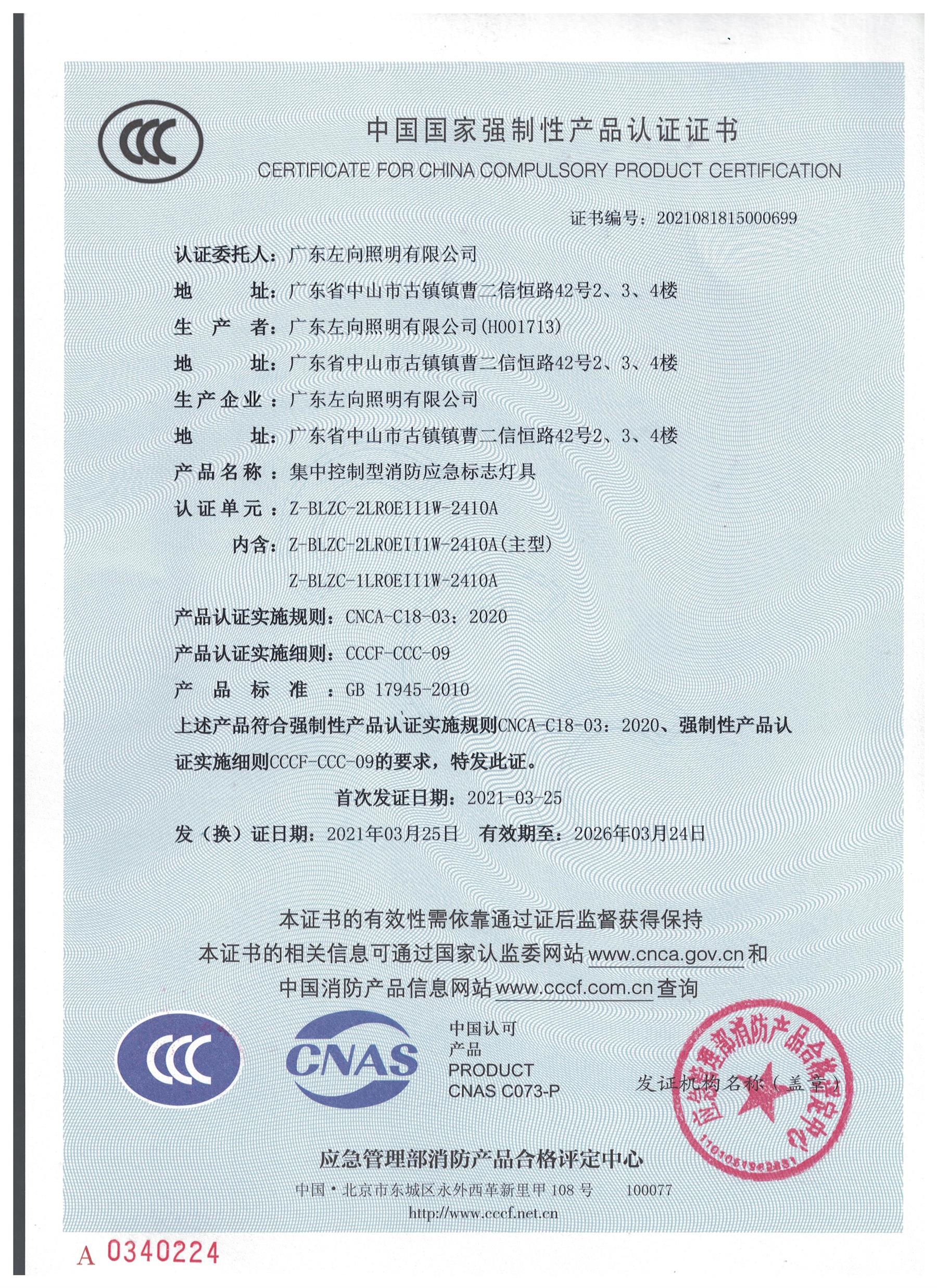 自带电源集中控制型消防应急标志灯具 ZX2410L